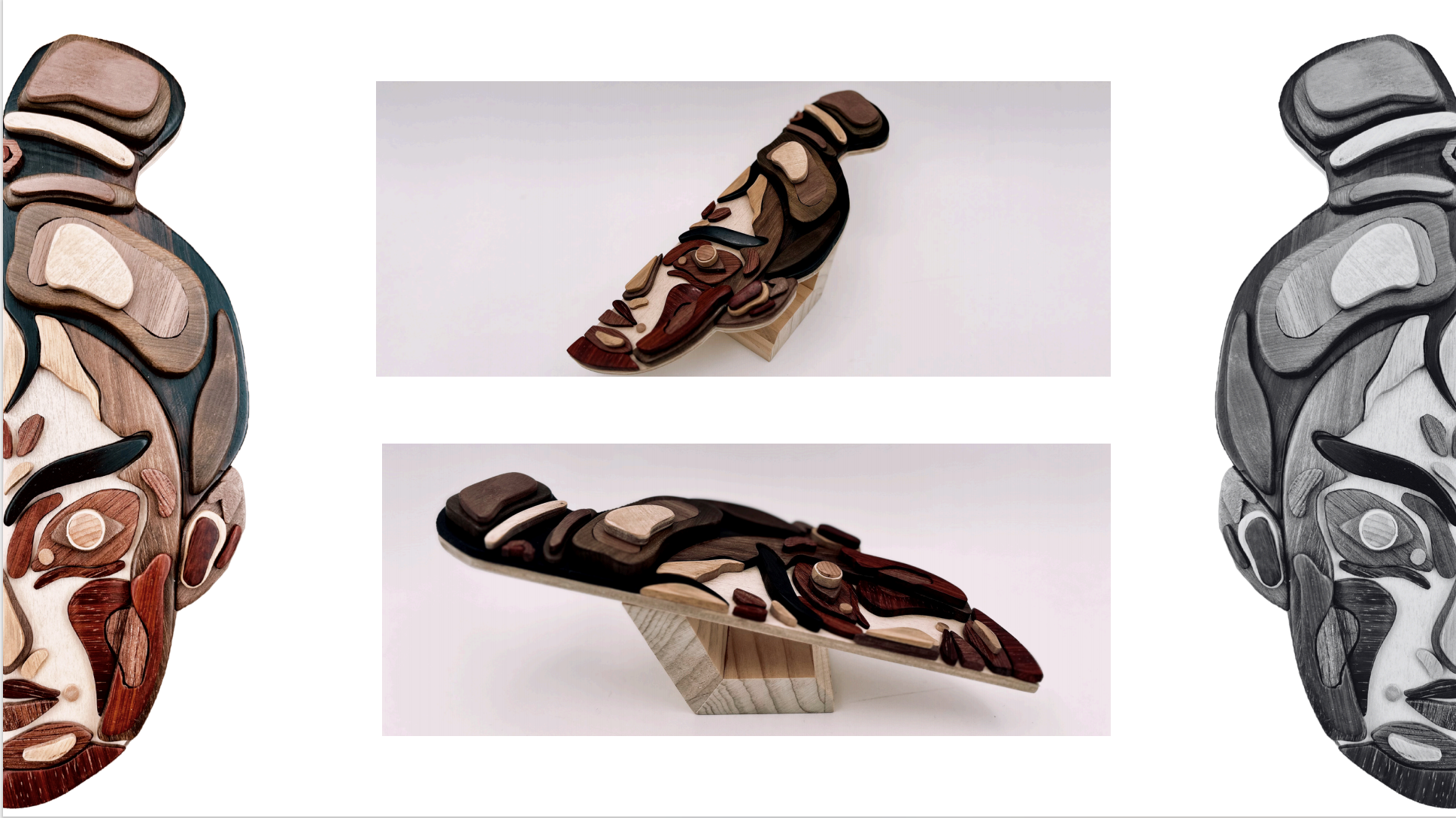Measuring 25cm × 8cm, the sculpture was created through a series of carving, sanding, and polishing processes that highlight both craftsmanship and emotion. The tactile transitions between the woods invite viewers to observe how material, form, and history interact in harmony.